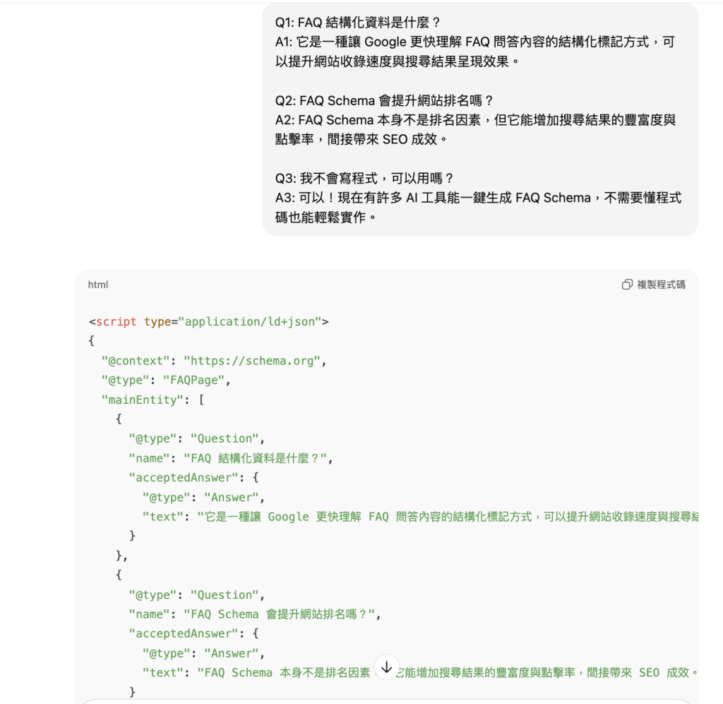 教你如何用AI 工具一鍵生成 FAQ 結構化資料