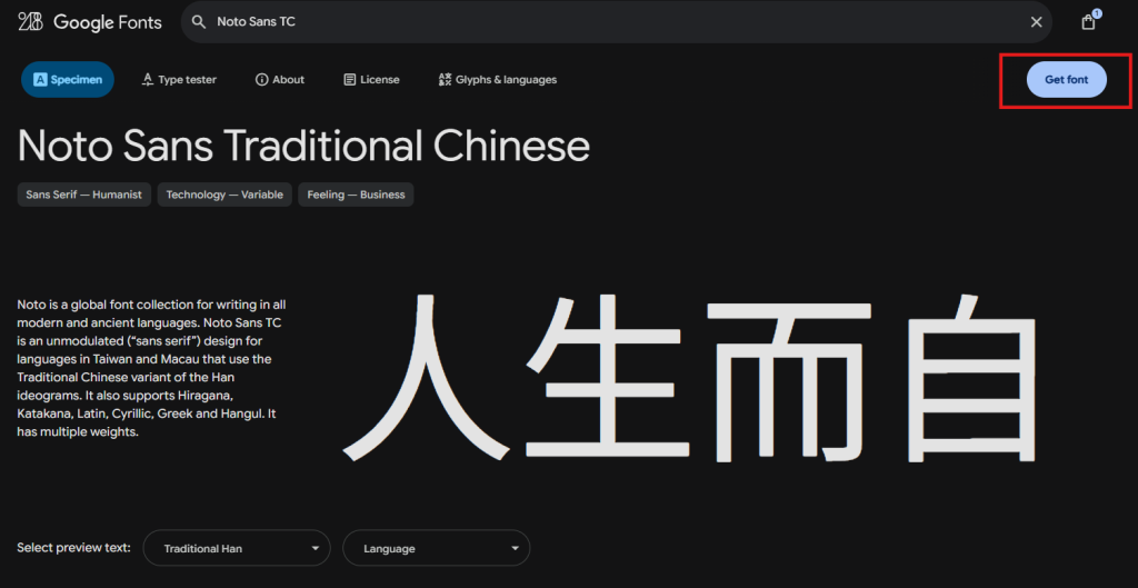 對中文使用者來說,Google Fonts 中最穩定且常見的選擇就是 Noto Sans TC。