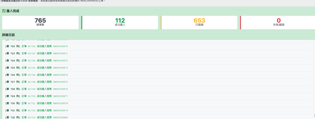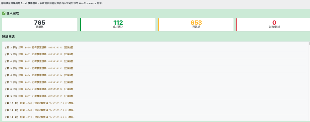 為了避免下一次批次匯出資料會重覆開立,你需要將批次開出的發票重新導入WooCommerce訂單後台