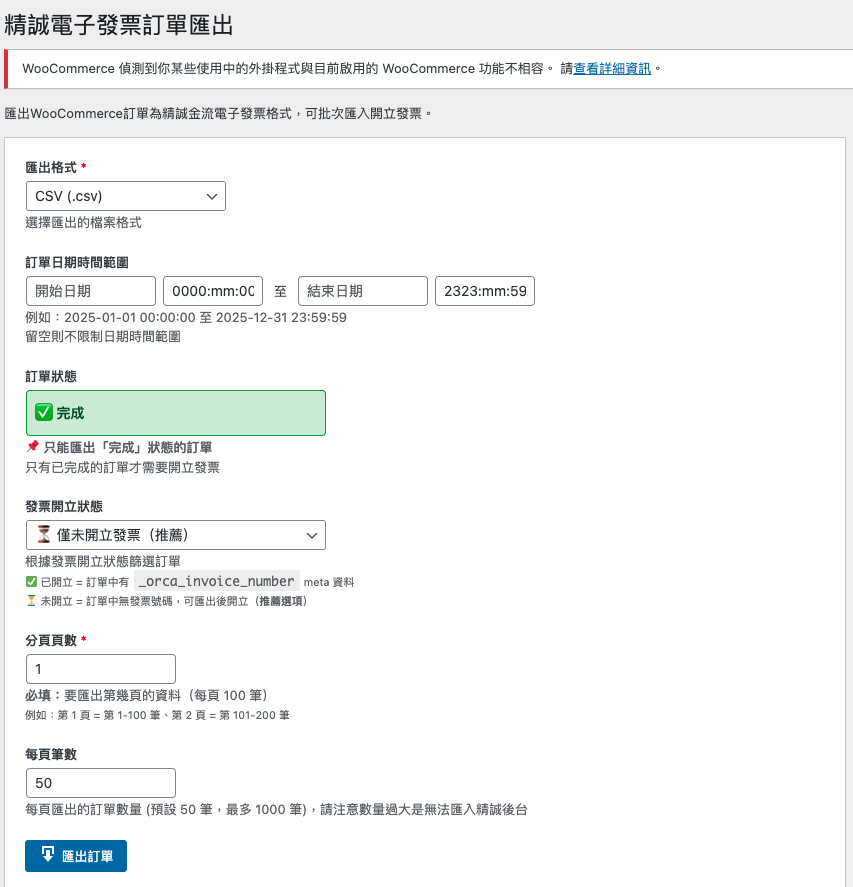 1. WP後台-精誠電子發票訂單匯出