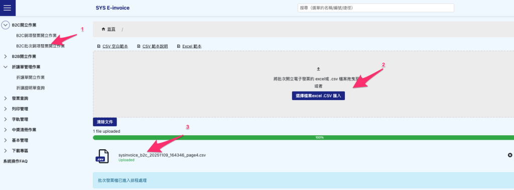 2. 精誠電子發票後台-B2C批次匯入