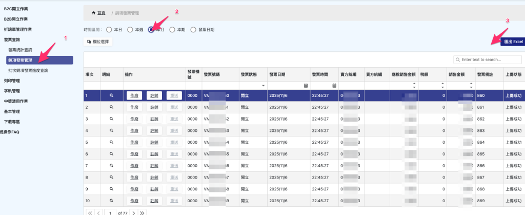 4. 精誠電子發票後台-已開立電子發票匯出
