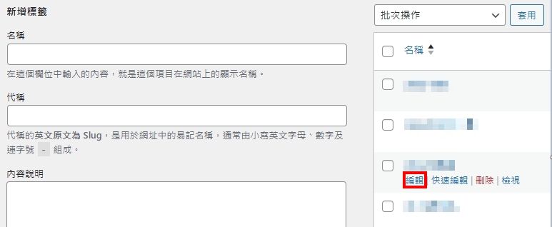 小提醒:可以在「文章」>「分類」或「標籤」中,查看所有已建立的分類與標籤,並進行編輯或刪除操作。