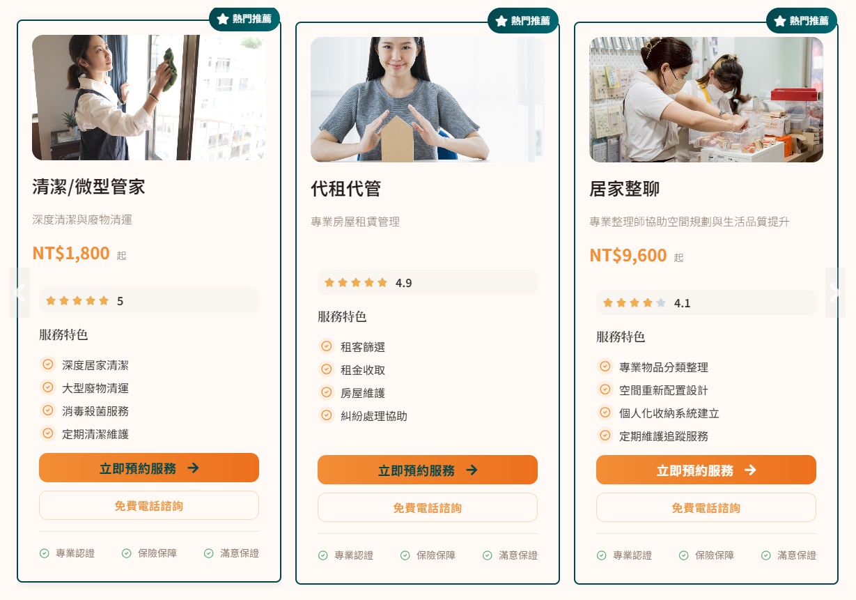 在網站首頁設置推薦服務區塊能建立內部連結,能提升 清潔/微型管家、代租代管 與 居家整聊 等特定服務在搜尋結果中的排名競爭力。同時,這能幫助 Google 爬蟲優先抓取核心業務,確保內容被快速索引。當關鍵字與相關服務連結在首頁頻繁出現時,也能強化網站的主題權威,讓搜尋引擎更精確地定義您的專業領域。