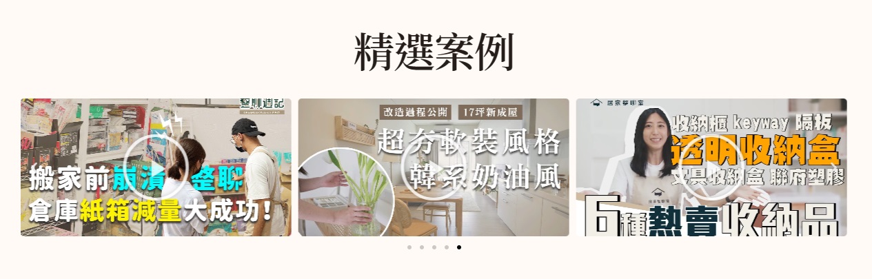 除了文字的分享之外,透過影片的呈現,能更生動地展現專業度,尤其是在精選案例的分享,將 居家整聊 與 精緻搬家 等案例以影音形式呈現時,能夠有效延長使用者在您品牌內容上的停留時間。